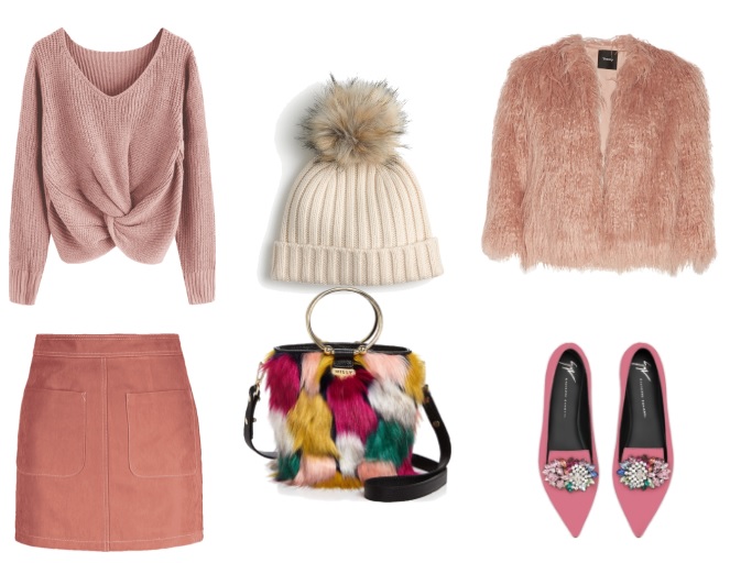Pink is just not for spring and summer! This fall mix up variations of soft and pale pinks with traditional fall and winter fabrics like suede, wool, and corduroy.